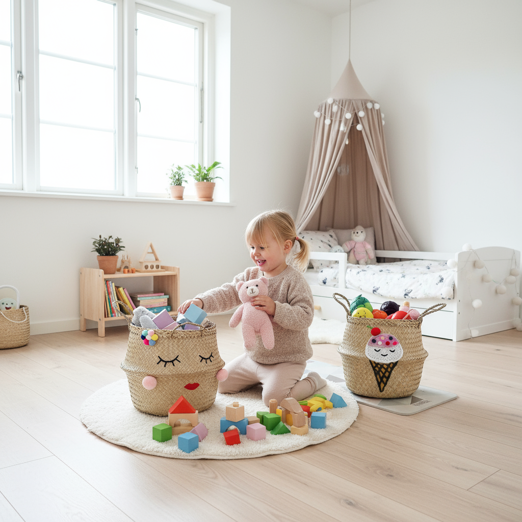 I got this so my 1 year old could take her toys out of it in the mornings, she absolutely loves it and so do I. It is so cute and soft enough that it doesn’t scratch her. She now likes to put stuff in it and carry it around the house. So beautifully made, stylish and cute!